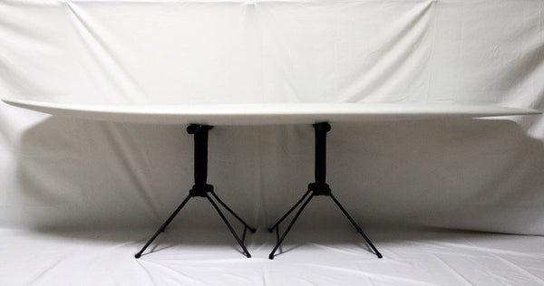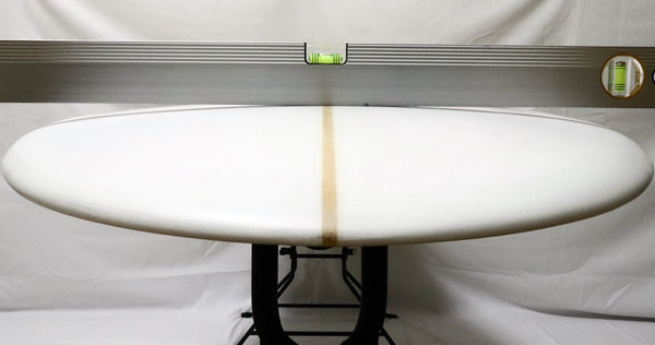 このボードはポイントブレイク系ハルのデザインを採用。全体的に薄めのフォイルながら、ボトムのトライプレーン形状により扱い易さも併せ持つ。1/4ストリンガーの採用がEricのロングボーダーとしての出自を感じさせる逸品。